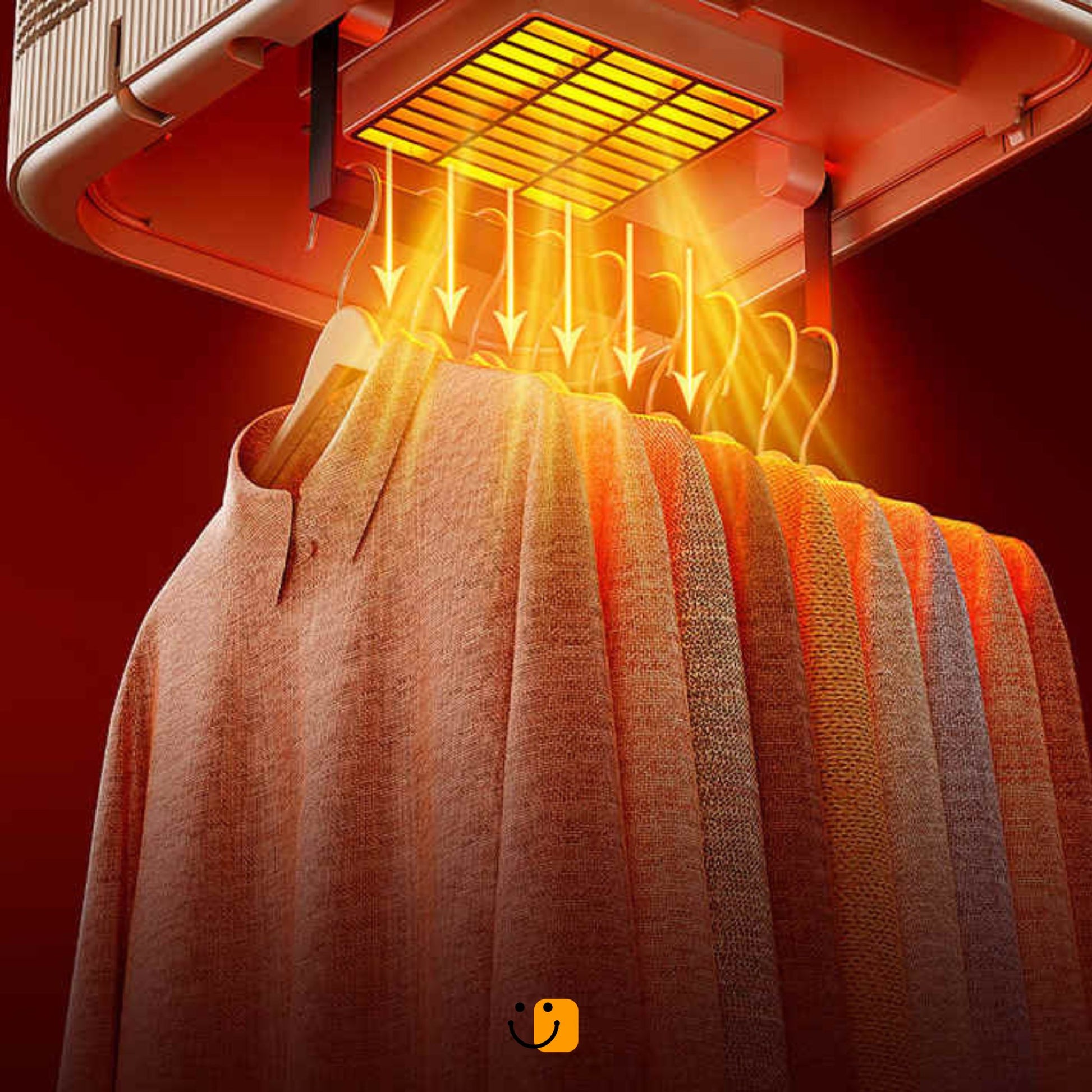Voici la solution parfaite : un sèche-linge suspendu intelligent qui sèche, repasse et stérilise tes vêtements à la maison en moins de 1h – même sans soleil !